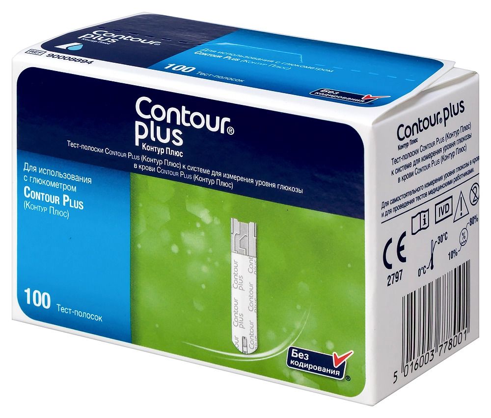 Тест-полоски Контур Плюс №100 - экономичная упаковка полосок с высокой точностью, технологией "без кодирования" и «второй шанс» позволяющей добавить кровь на полоску, если ее было не достаточно.